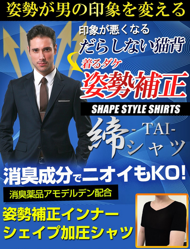 しかし、この加圧シャツは広背筋付近に外から圧がかかるようになっており、さらに腹部にも圧がかかるようになっています。