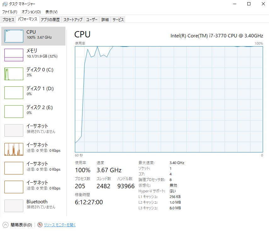 CPUの使用量が100%に!!