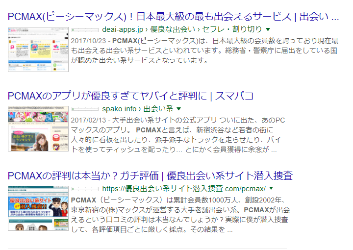 久しぶりに「出会い系」で検索してみたら「PCMAX」がやたらとほめてる人が多いのでした。