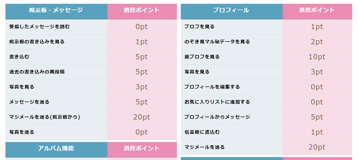 ・プロフィールを見る、メッセージを送るのにポイントが必要