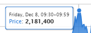 2017年12月8日に 1ビットコイン = 2,181,400円 をつけました。