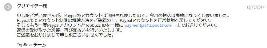そしてもう一度PaypalアカウントとTopBuzz IDを一緒に paymentja@topbuzz.com までお送りください。