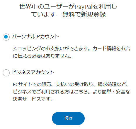 PayPalの初期アカウント「パーソナルアカウント」は支払いだけ