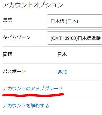 2 ページ下部左側にある[アカウントのアップグレード]をクリックします。