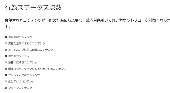 [コミュニティ ガイドラインステータス]は2点減点、2日投稿できないようになります